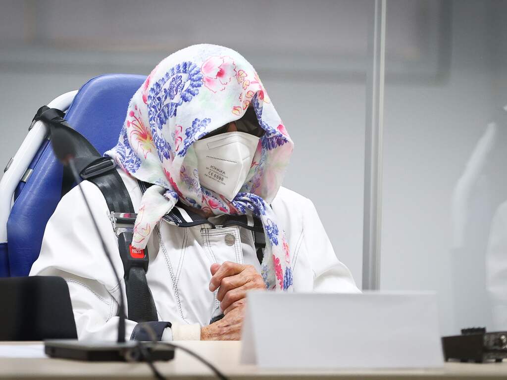 De hoogbejaarde vrouw was dinsdag in een rolstoel naar de rechtbank in de Duitse plaats Itzehoe (Sleeswijk-Holstein) gereden. Ze moet daar ondanks haar gevorderde leeftijd voor een jeugdrechter verschijnen. Dat heeft te maken met de leeftijd waarop ze de strafbare feiten zou hebben gepleegd.