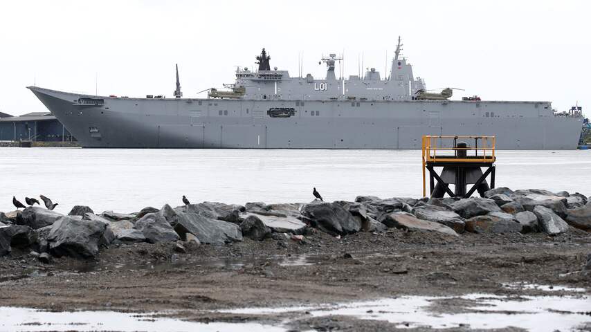 Een Australisch militaire hulpschip ligt klaar om naar Tonga te varen. | Beeld: ANPDodental staat op vijf, maar kan nog oplopen