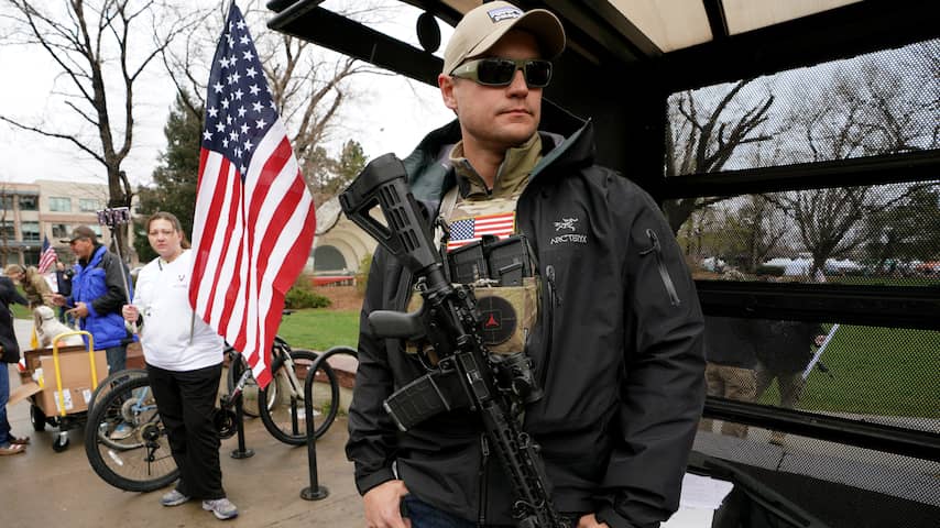 Een Amerikaan draagt een AR-15-aanvalsgeweer dat de antiwapenbeweging al jaren wil verbieden. | Beeld: Getty ImagesWeinig vooruitgang door politieke wurggreep
