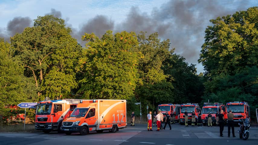 In een bos in de buurt van Berlijn woedt donderdagochtend een grote brand. Die ontstond nadat een opslagplaats met munitie van de Duitse politie was ontploft.
