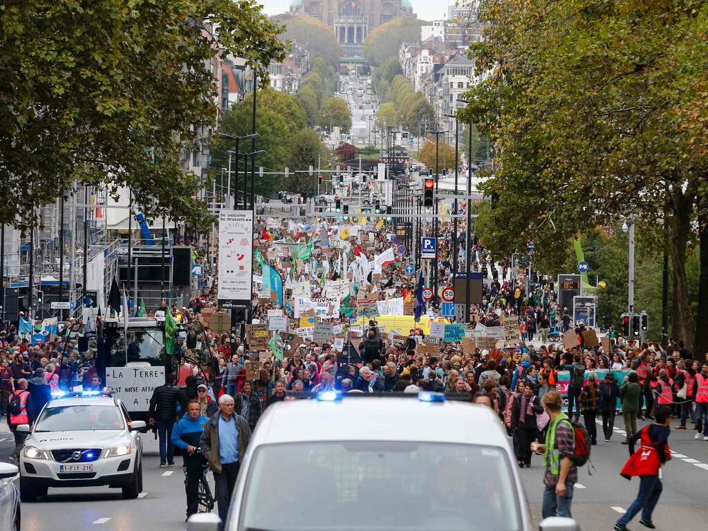 Tienduizenden mensen lopen een klimaatmars in Brussel. De demonstranten willen maatregelen tegen de klimaatverandering op de politieke agenda houden, in aanloop naar de internationale top in november in Egypte.