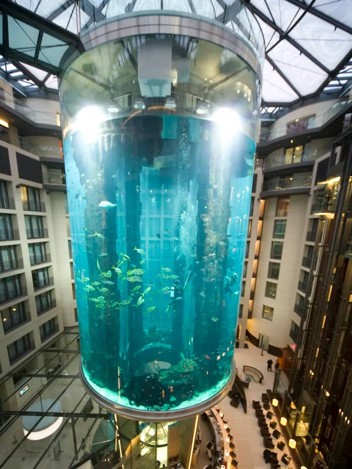 In de lobby van een hotel in de binnenstad van Berlijn is vrijdag een gigantisch aquarium met zeker vijftienhonderd vissen opengebarsten. Het aquarium was zestien meter hoog. Door de explosie en de enorme watergolf belandden brokstukken en de meubels op straat. Het is niet duidelijk of er vissen gered konden worden.