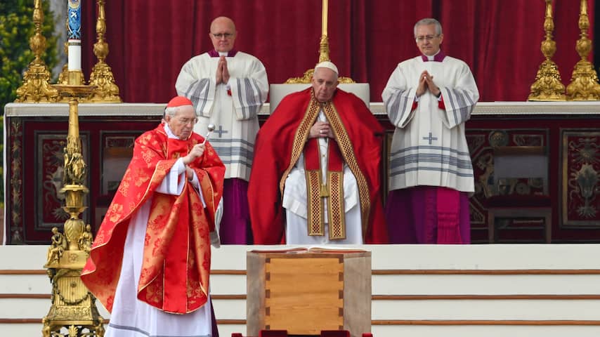 Om 10.00 uur begon de dienst, die werd geleid door paus Franciscus. Zijn voorganger Benedictus werd 95 jaar. Joseph Aloisius Ratzinger, zoals zijn echte naam luidde, werd geboren in het zuidoosten van de Duitse deelstaat Beieren. | Beeld: AFP