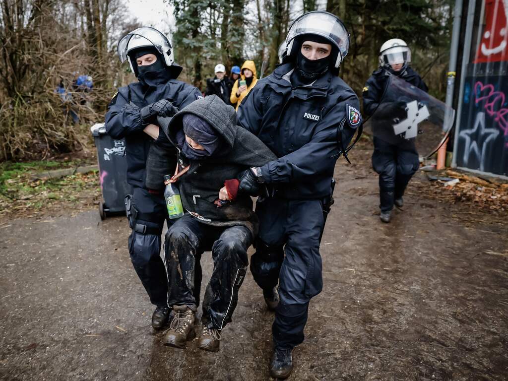 Ontruiming Duits 'bruinkooldorp' mondt uit in gevechten tussen politie en activisten