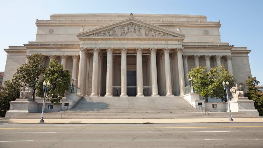 Het Amerikaanse nationale archief in Washington. In dit gebouw worden onder meer alle officiële overheidsdocumenten bewaard. | Beeld: Getty Images