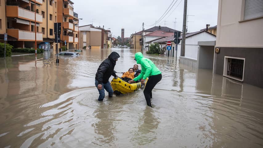 De regio Emilia-Romagna heeft al dagen te maken met zware regenbuien. Op sommige plaatsen viel in anderhalve dag wat normaal in een half jaar valt. | Beeld: AFP
