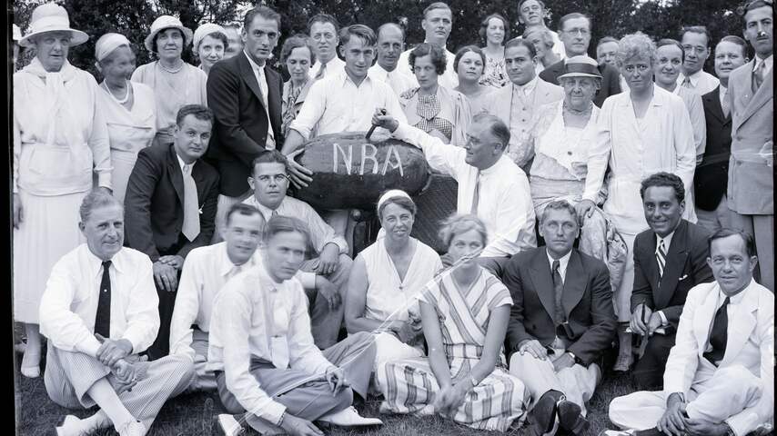 President Franklin Delano Roosevelt poseert in 1933 met leden van de NRA. | Beeld: Getty ImagesNRA veranderde onder Carter in een zeer actieve lobbyclub