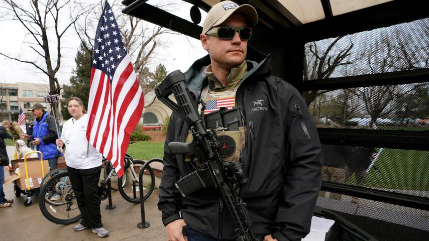 Een Amerikaan draagt een AR-15-aanvalsgeweer dat de antiwapenbeweging al jaren wil verbieden. | Beeld: Getty ImagesWeinig vooruitgang door politieke wurggreep