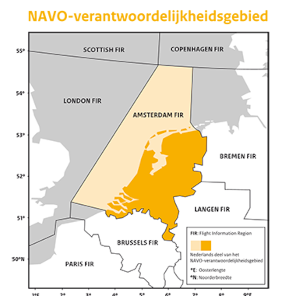 De Amsterdam Flight Information Region, het deel dat Nederland in de gaten moet houden. | Beeld: Ministerie van DefensieEnkele keren per jaar een QRA