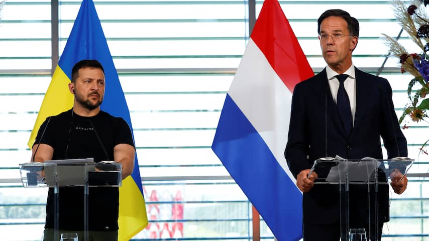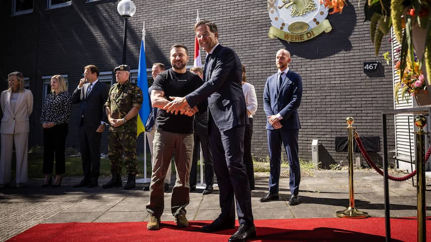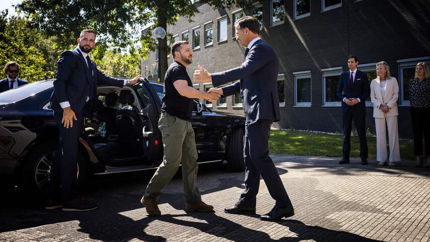 Het was de tweede keer dat Zelensky voet op Nederlandse bodem zette. De president van Oekraïne was er ook in mei. | Beeld: ANP