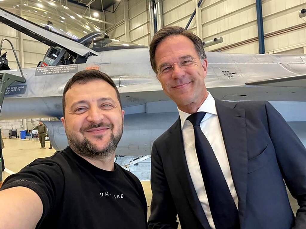 Belangrijk agendapunt was de levering van F-16-'s. Nederland wil de gevechtsvliegtuigen graag aan Oekraïne leveren, maar had daar toestemming voor nodig van de Verenigde Staten. De VS gaf eerder deze week groen licht. | Beeld: ANP