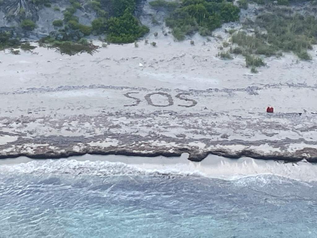 De kustwacht kreeg de man in het vizier nadat er lichtkogels waren gezien nabij Cay Sal. De man had op het eiland groot "SOS" in het zand geschreven.