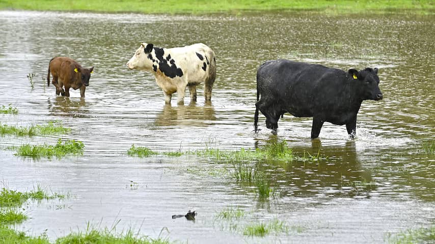 Een stel koeien staan in een overstroomd veld in het Oostenrijkse Altheim in de regio Tirol. | Beeld: AFPAardverschuiving in Noord-Italië