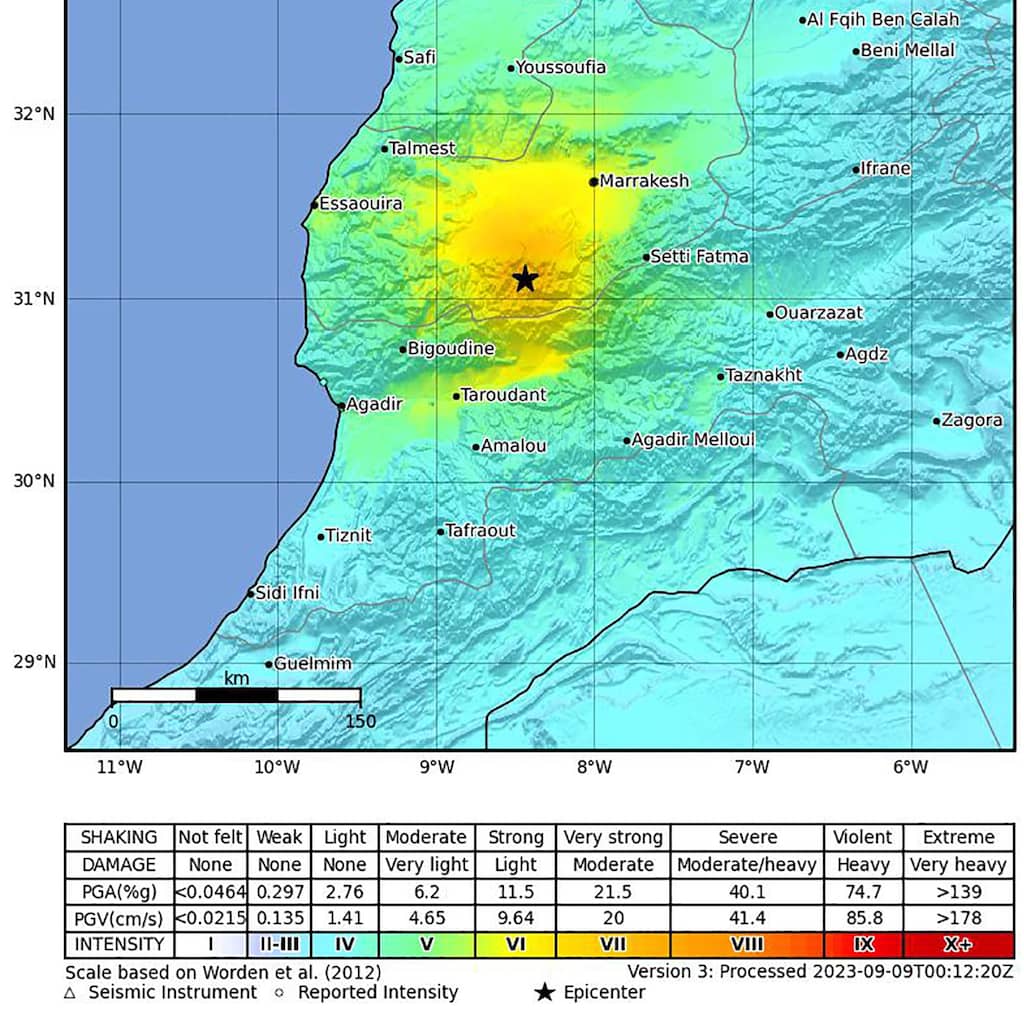 De beving was vrijdagavond even na 23.00 uur en had volgens het Amerikaans seismologisch instituut USGS een magnitude van 6.8. Dat zou de zwaarste beving in die regio zijn in meer dan een eeuw. In Marrakesh zijn enkele historische gebouwen beschadigd geraakt. Duizenden mensen moesten hun woning verlaten en sliepen vannacht op straat.
