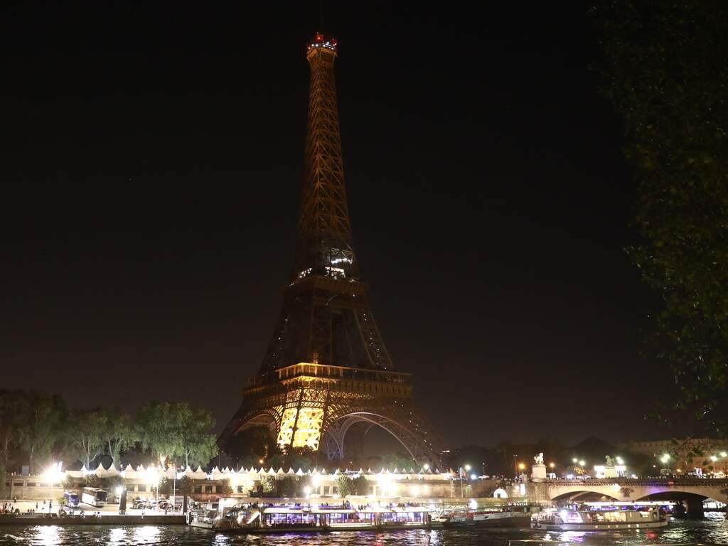 Zo zag de Eiffeltoren er gisteravond uit. De verlichting van het wereldberoemde bouwwerk in Parijs ging om 23.00 uur uit om steun te betuigen aan de slachtoffers van de aardbeving in Marokko.