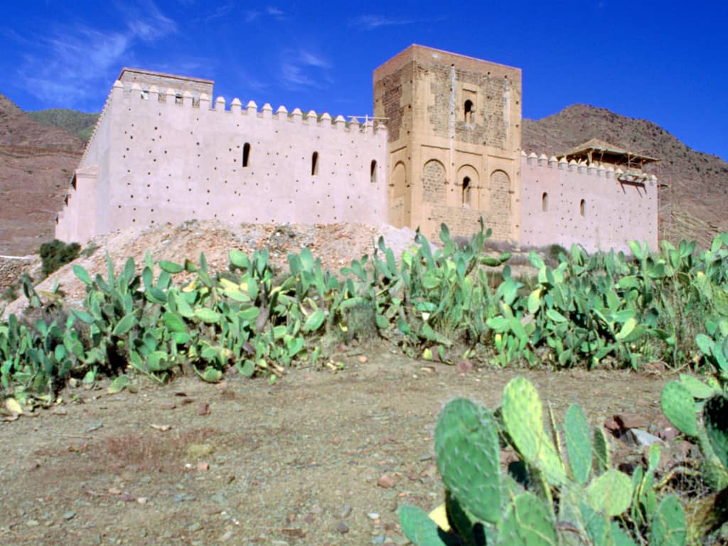 Volgens Marokkaanse media zijn delen van de moskee ingestort. Op nog ongeverifieerde beelden zijn ingestorte muren, een half omgevallen toren en puin te zien. Op de bijgaande foto kun je zien hoe de moskee van Tinmel er voor de aardbeving uitzag.
