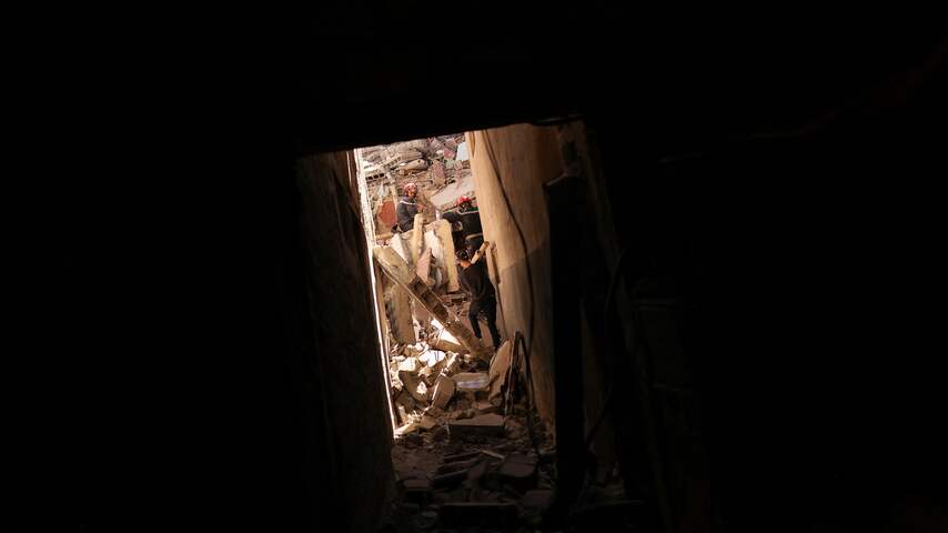 Reddingsteams en inwoners zoeken met man en macht naar overlevenden onder het puin. | Beeld: AFP