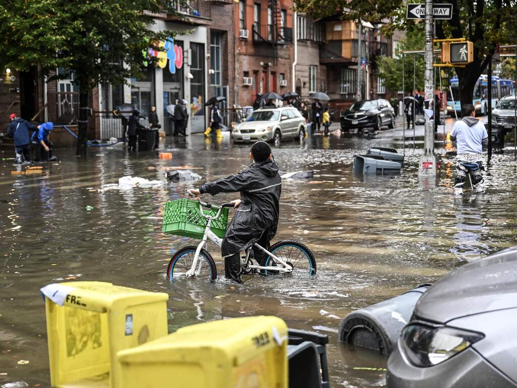 Zware regenval heeft in New York geleid tot overstromingen en ondergelopen straten. De noodtoestand werd uitgeroepen in en rond de stad en inwoners werden opgeroepen thuis te blijven (behalve mensen die in kelders wonen).
