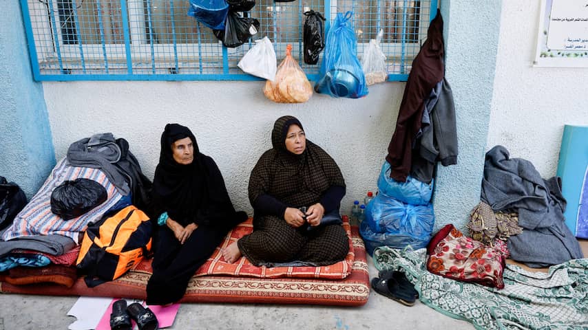 Palestijnse vluchtelingen schuilen in een schoolgebouw in Khan Younis. | Beeld: Reuters'VN-hulp stopt als er geen brandstof komt'
