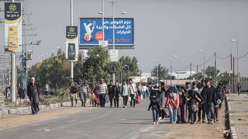Eerder op dinsdag trokken weer veel Palestijnen richting het zuiden van de Gazastrook. | Beeld: Getty Images'Niet uit op een oorlog met Hezbollah'