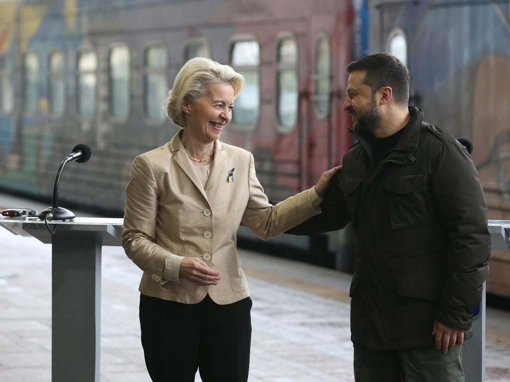 Het land heeft volgens Von der Leyen "al veel meer dan 90 procent" van het noodzakelijke werk afgerond. Alleen de strijd tegen corruptie en de rechten van minderheden moeten nog beter. Maar "jullie kunnen het halen, en snel ook", zei Von der Leyen tegen Oekraïne.