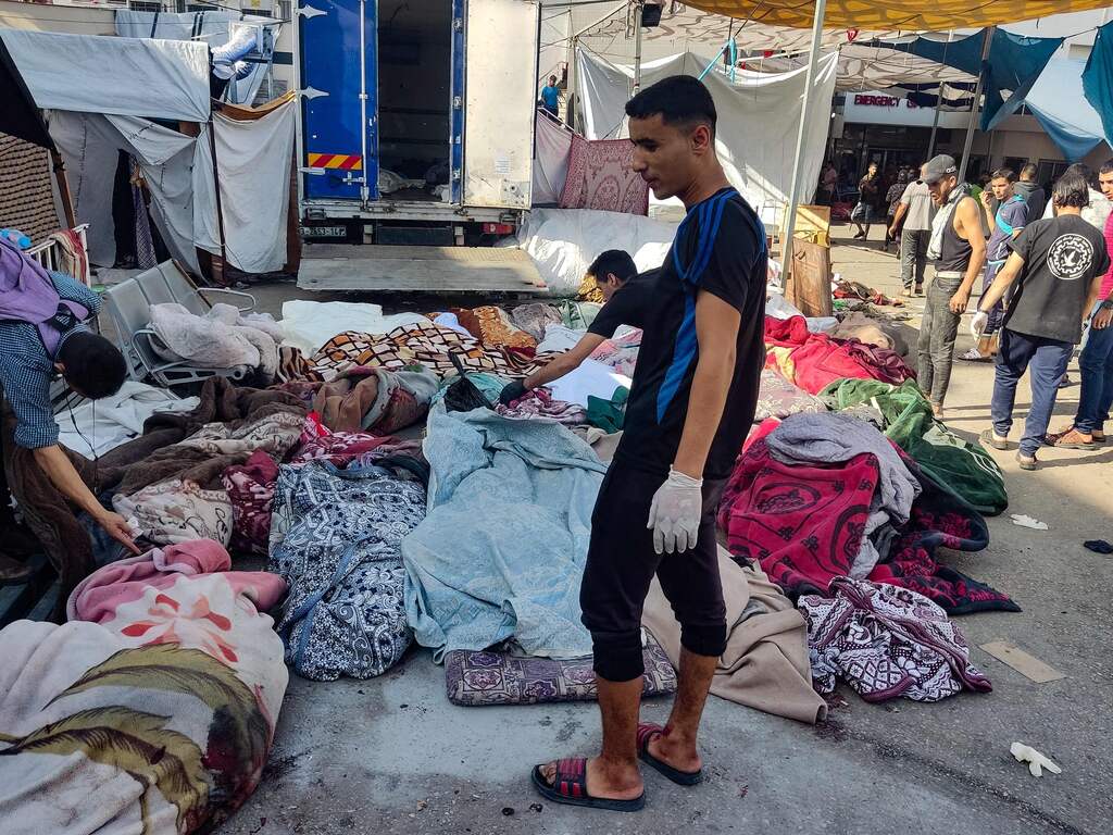 De doden rondom het Al Shifa-ziekenhuis in Gaza-Stad stapelen zich op. | Beeld: AFP'Er liggen veel doden op straat'