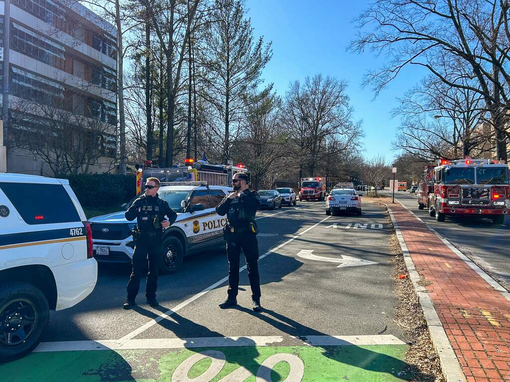 Leden van de Amerikaanse geheime dienst hebben het vuur gedoofd. De man is met levensbedreigende verwondingen naar het ziekenhuis overgebracht. Niemand anders is gewond geraakt. De lokale politie en de geheime dienst onderzoeken het incident.
