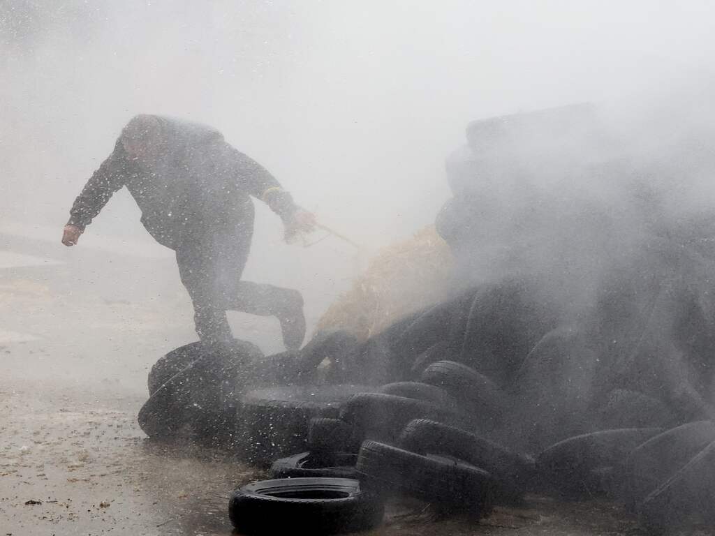 Een van de demonstranten versnipperde een strobaal en bedekte zo een straat met een laag stro. Andere boeren staken het vervolgens in brand, waardoor veel rook ontstond. Op het Robert Schumanplein, waar veel boeren bijeen waren gekomen, ontstonden opstootjes tussen de actievoerders en de politie.