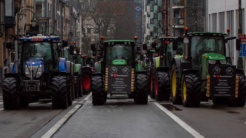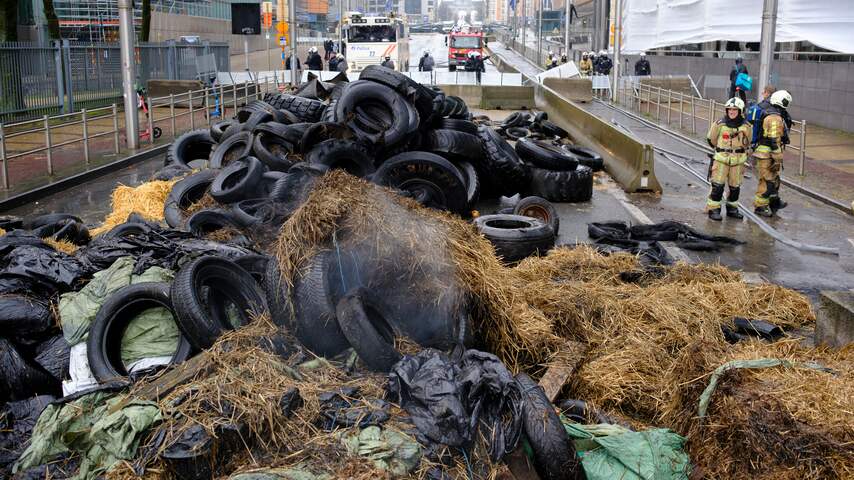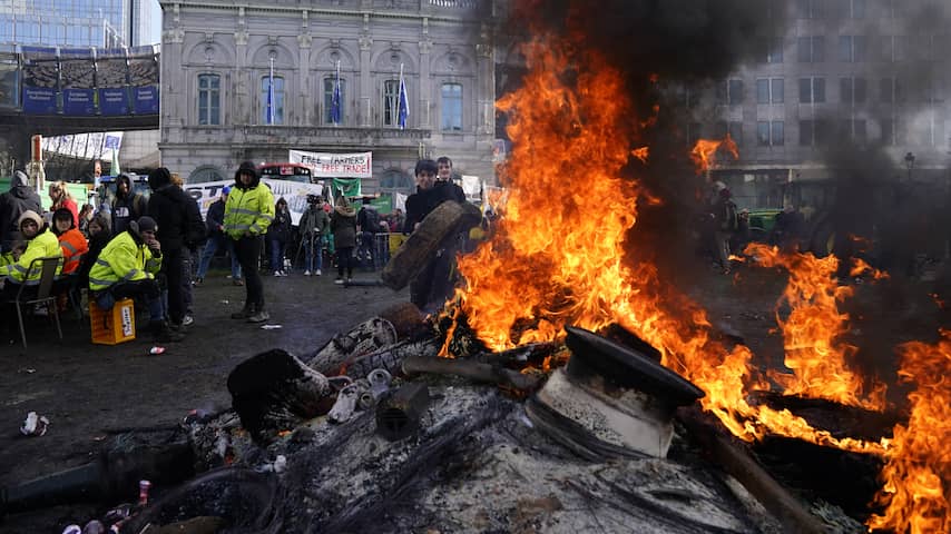 In beeld Brandende strobalen en mest over politie: boeren roeren zich in Brussel