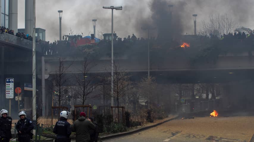 Het liep maandag uit de hand in de buurt van de Etterbeeksesteenweg in de Europese Wijk. De meeste demonstranten verzamelden zich daar al vroeg in de ochtend. | Beeld: Getty Images