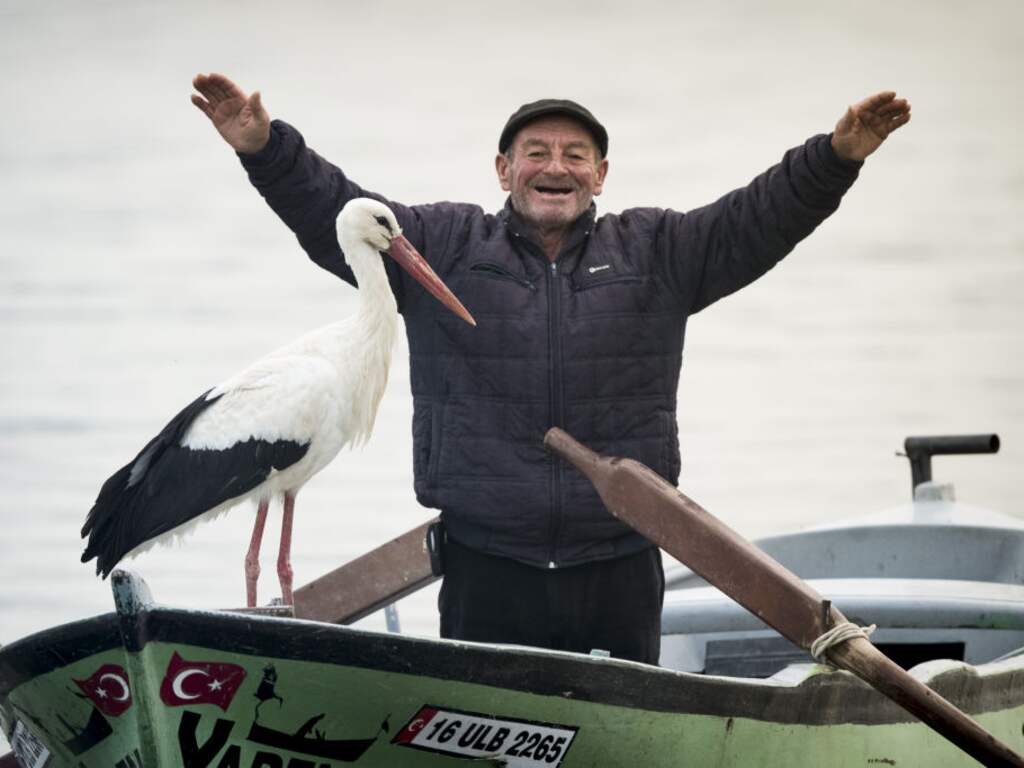 Turkse visser krijgt voor dertiende jaar op rij bezoek van dezelfde ooievaar