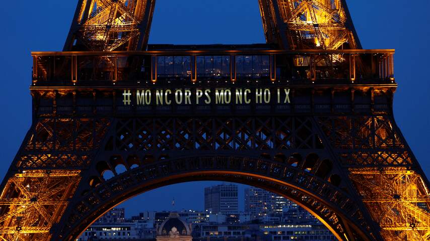 Na het aannemen van de wet verscheen de tekst 'Mon corps, mon choix' (Mijn lichaam, mijn keuze) op de Eiffeltoren. | Beeld: AFPAbortus 'niet overgeleverd aan grillen van de politiek'