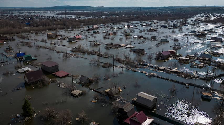 In de Russische stad Orsk (regio Orenburg) staan veel huizen onder water door de overstromingen. | Beeld: Reuters