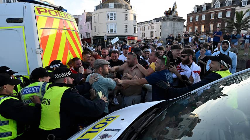 In Weymouth wordt al maanden gedemonstreerd tegen de komst van asielzoekers, maar het protest intensiveerde deze week. | Beeld: AFP