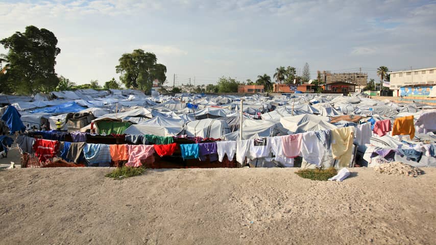 Een geïmproviseerd tentenkamp in de buurt van Port-au-Prince. | Beeld: Getty Images