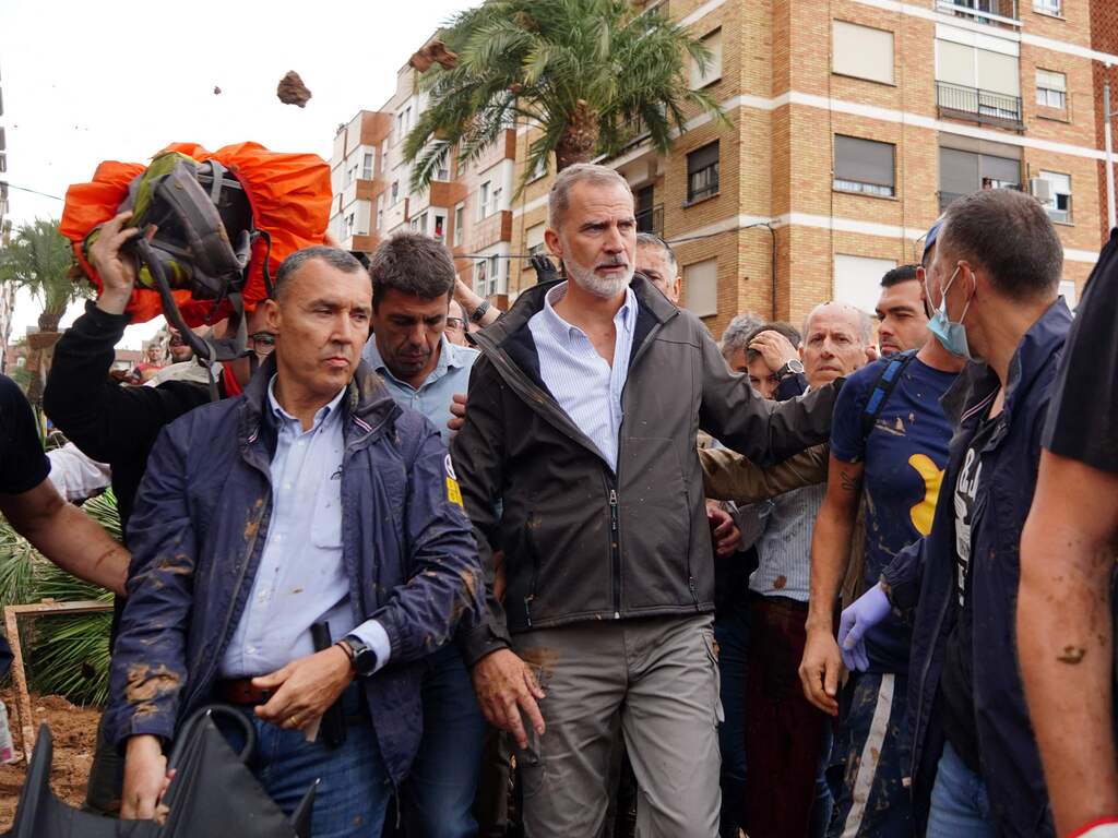 Het bezoek van Felipe VI, koningin Letizia en premier Pedro Sánchez in de rampgebieden leidt tot protesten. Volgens verschillende Spaanse media zijn de betogers boos, omdat hulp te laat zou zijn gekomen.