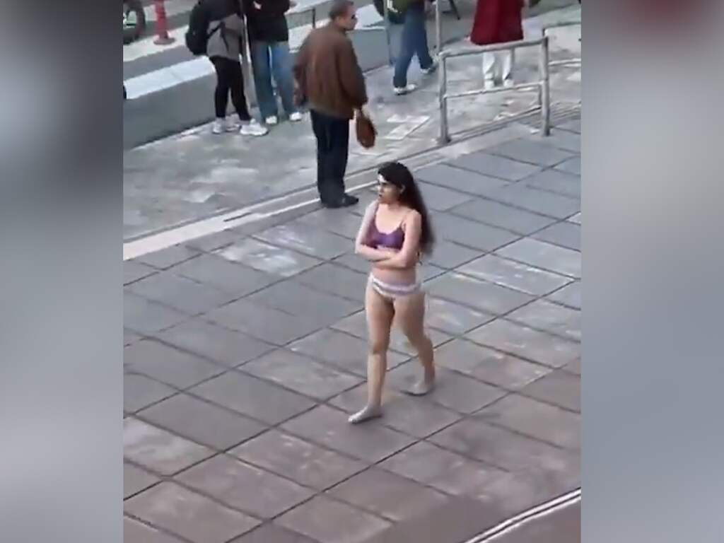 Op beelden is te zien dat de vrouw in haar ondergoed op een muurtje zit. Vlak daarvoor had ze zelf haar kleren uitgetrokken en liep ze in ondergoed over de universiteitscampus. In de video wordt ze vervolgens hardhandig in een auto geduwd en gearresteerd.