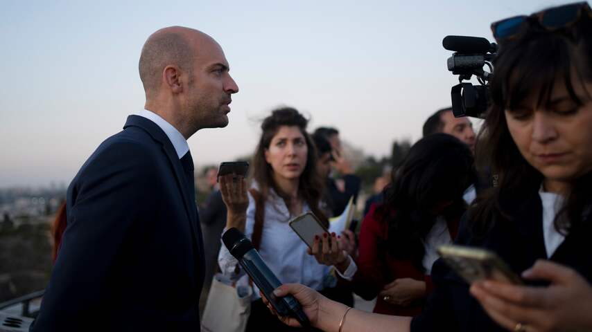 Jean-Noël Barrot staat de pers te woord op de Olijfberg. | Beeld: APIsraël ontkent gedwongen permanente verhuizing van Gazanen