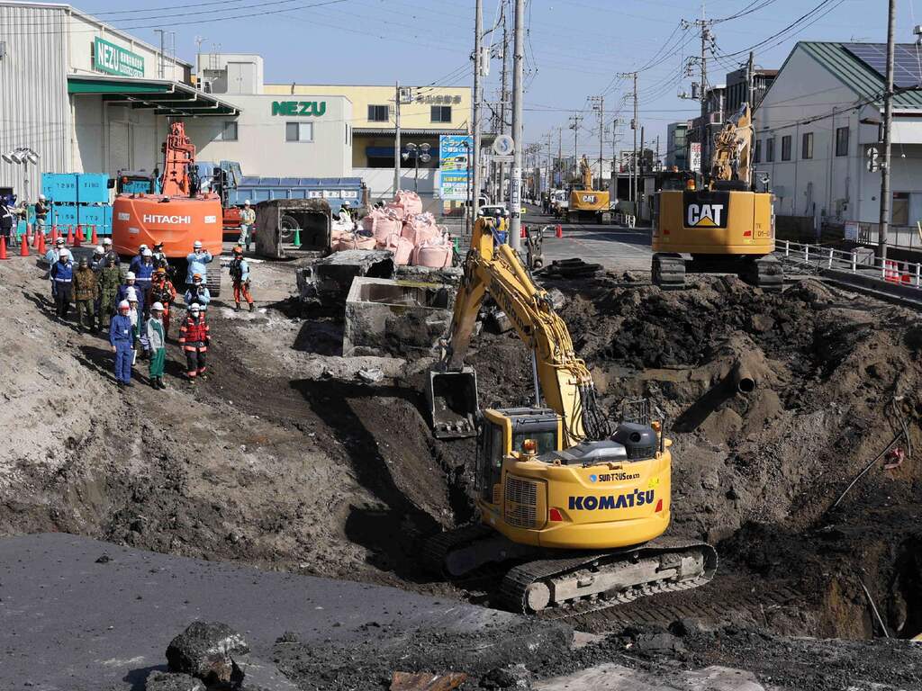 Het zinkgat in Yashio, een stad in de buurt van Tokio, ontstond op een druk kruispunt. Mogelijk kwam dat door schade aan de riolering. Meer dan een miljoen mensen zijn opgeroepen water te besparen door minder te wassen en korter te douchen. Dat moet voorkomen dat er meer rioolwater weglekt dat de reddingsoperatie kan hinderen.