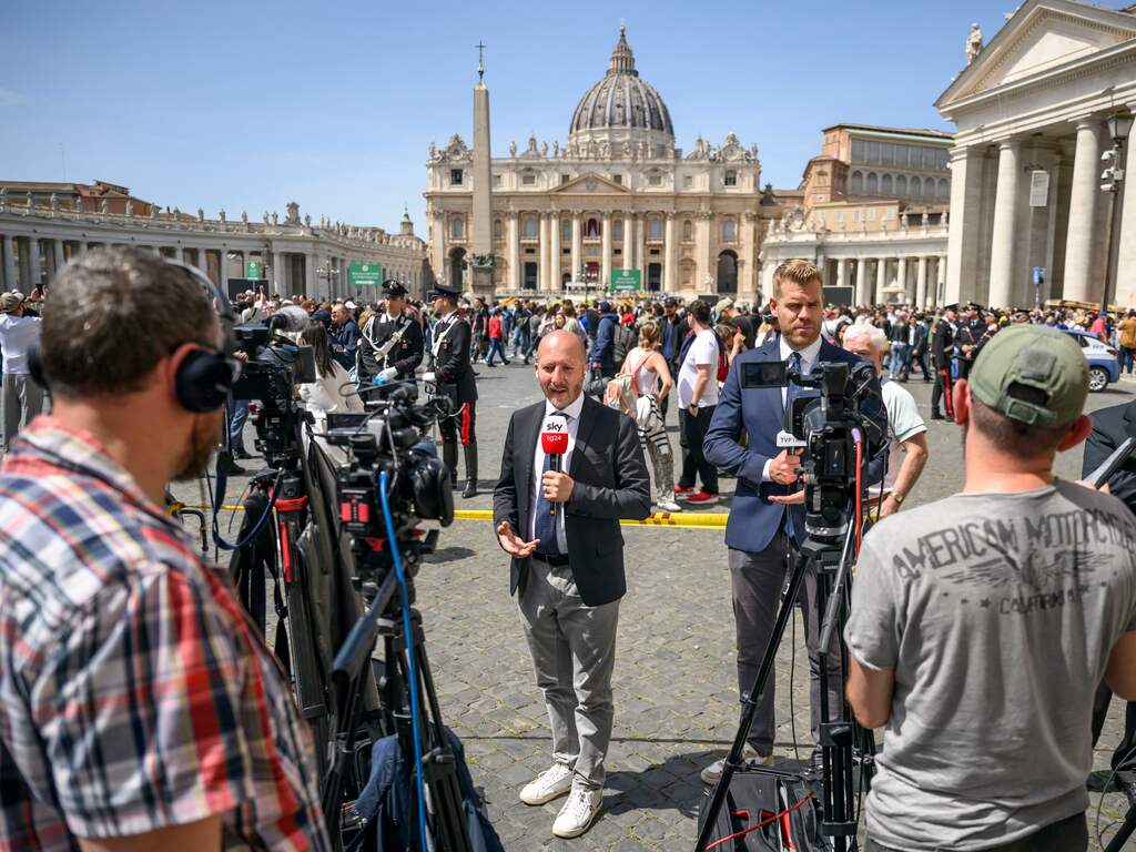 Ook de media zijn massaal naar het Sint-Pietersplein gekomen om het publiek op de hoogte te houden van de laatste informatie. | Beeld: Getty Images
