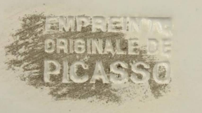 De schaal kwam binnen met ander huisraad. Een alerte medewerker van de Kringwinkel merkte een stempel op de achterzijde op: Empreinte originale de Picasso (originele prent van Picasso).