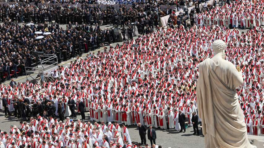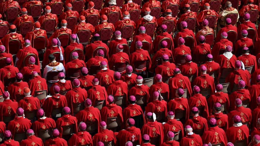 Een zee van kardinalen, te herkennen aan hun rode gewaden, was aanwezig op het Sint-Pietersplein. | Beeld: BrunoPress