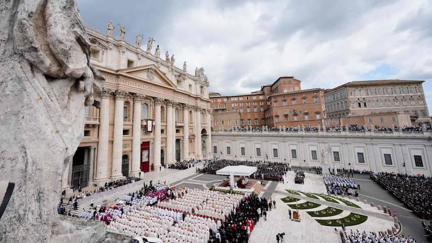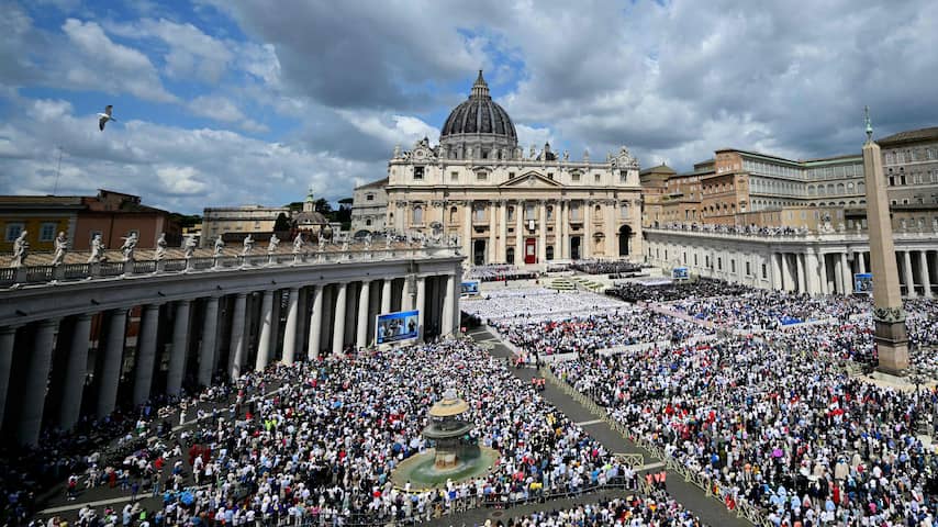 Het plein voor het Vaticaan stroomt vol met mensen. Op beelden is te zien hoe mensen verschillende vlaggen omhoog houden. Het Vaticaan verwacht een kwart miljoen belangstellenden op het Sint-Pietersplein.
