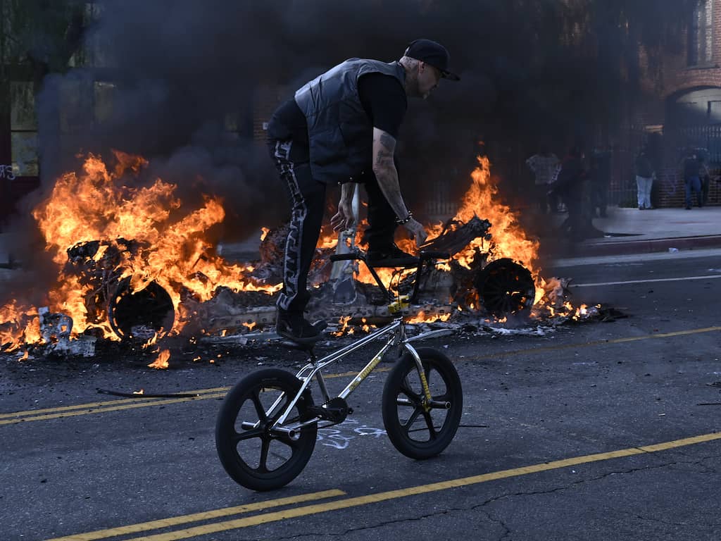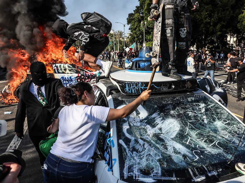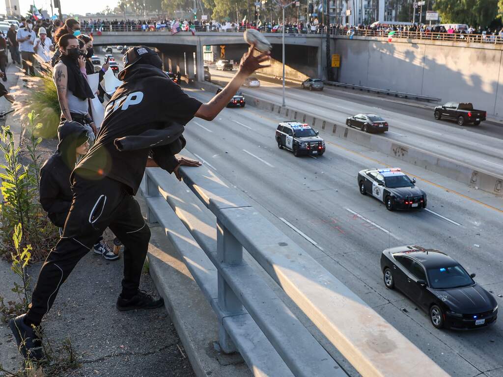 Inmiddels heeft de politie in Los Angeles een samenscholingsverbod afgekondigd voor het centrum van de stad. | Beeld: Getty Images