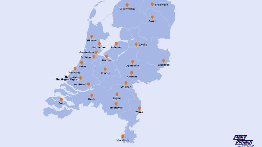 Alle 25 locaties waar zorgpersoneel kan worden ingeënt | Beeld: GGD GHOR