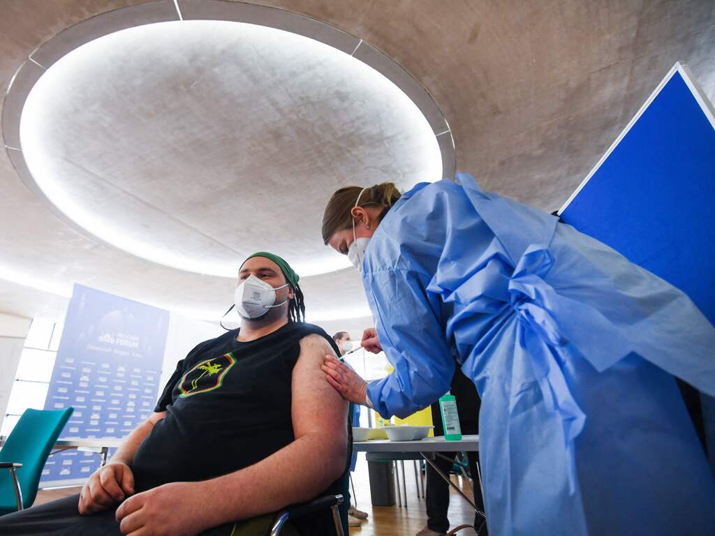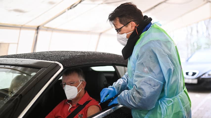 Vanwege een volgeboekt vaccinatiecentrum in het West-Duitse Schwelm werd een tijdelijke drive-invaccinatielocatie ingericht. | Beeld: AFPLuxemburg zet bijna zevenduizend prikken per dag