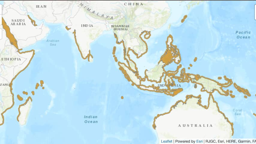 Het leefgebied waar de Doejong nog wel voorkomt. | Beeld: IUCN Red ListFavoriete snack van Doejong verdwijnt in rap tempo