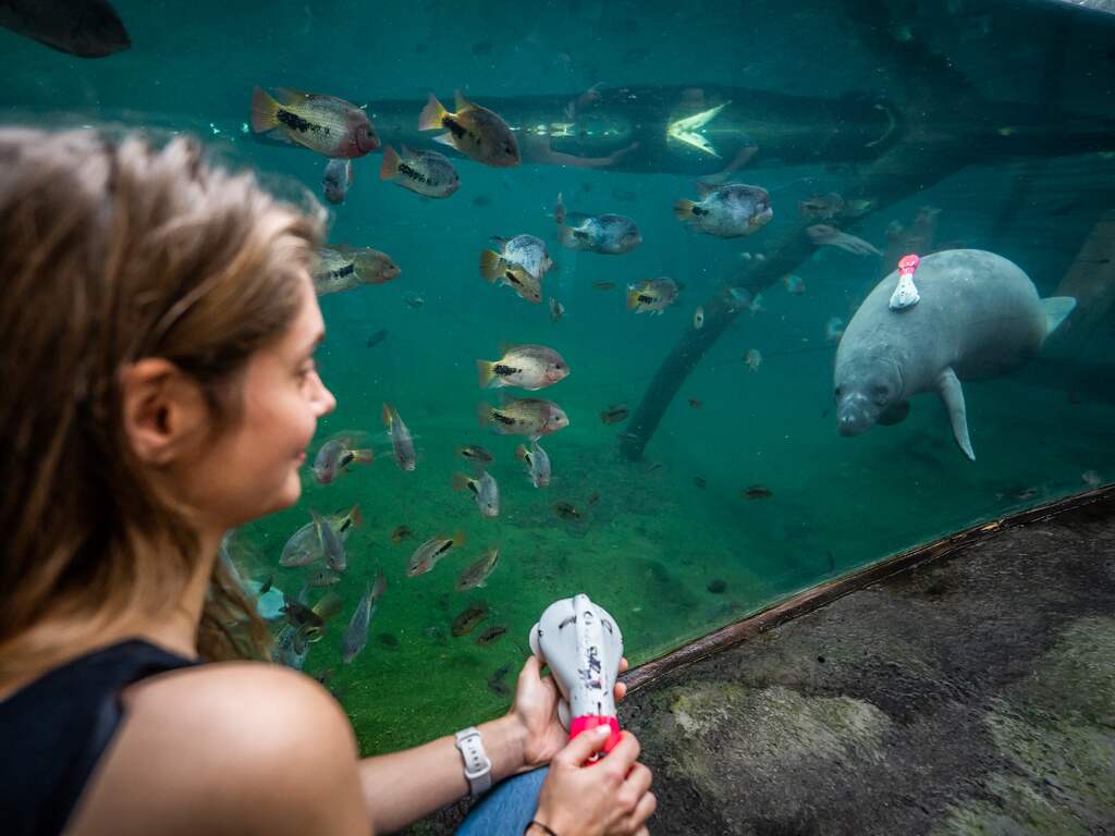 Tijdens de testfase in Burgers' Zoo kijken dierenverzorgers en biologen van de Arnhemse dierentuin waar op het lichaam van de zeekoeien de camera's het best bevestigd kunnen worden. Als de test succesvol is, worden ook zeekoeien in het Caribisch gebied voorzien van een camera.
