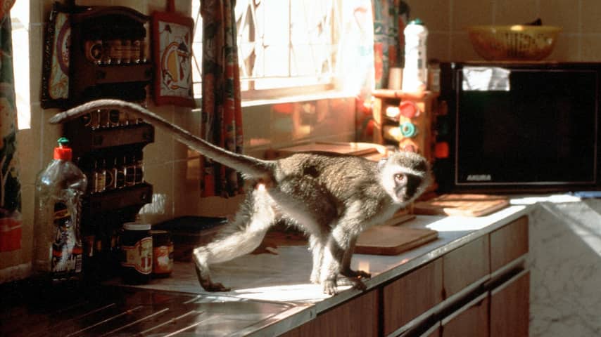 Het gaat om de vervet, ook wel bekend als de Zuid-Afrikaanse groene meerkat of blauwaap. De aap komt vooral voor in Afrika, maar heeft dankzij de mens de overstap gemaakt naar het Caribisch gebied.