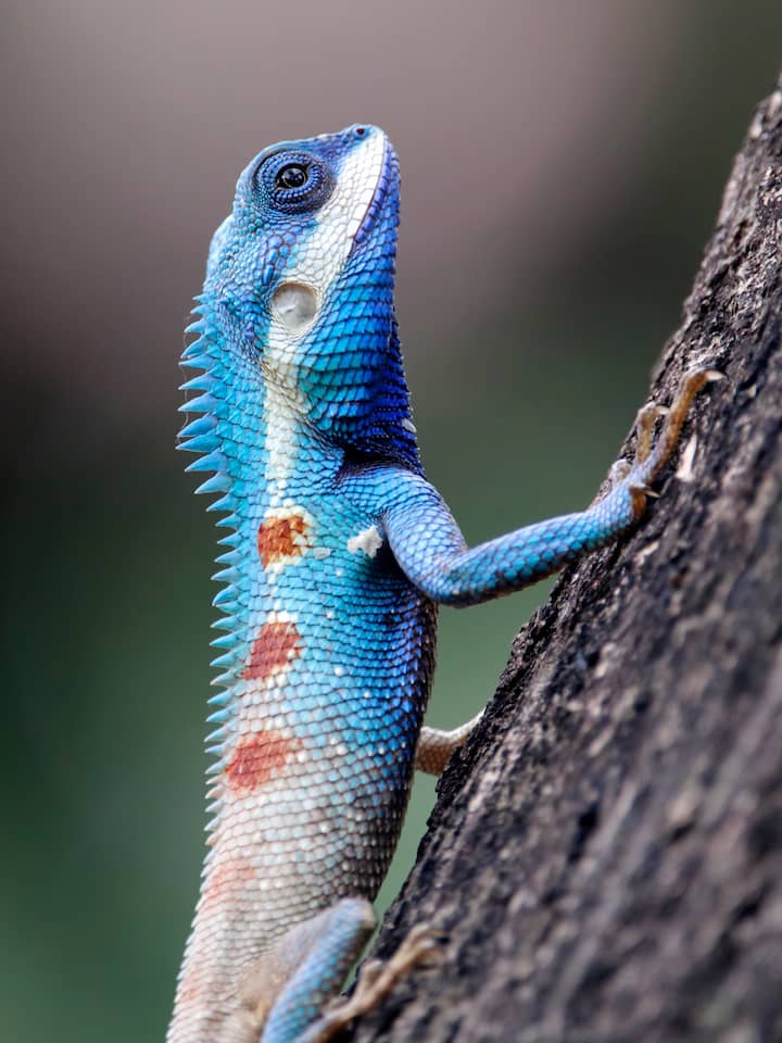 De agressieve hagedis met blauwe kuif uit Cambodja. Deze verandert van kleur als verdedigingsmechanisme. | Beeld: Getty Images